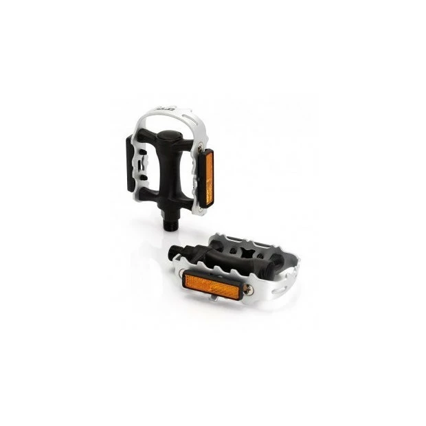 Le corps de ces pédales est en plastique, la cage en aluminium. Les pédales sont disponibles en noir ou noir/argent.